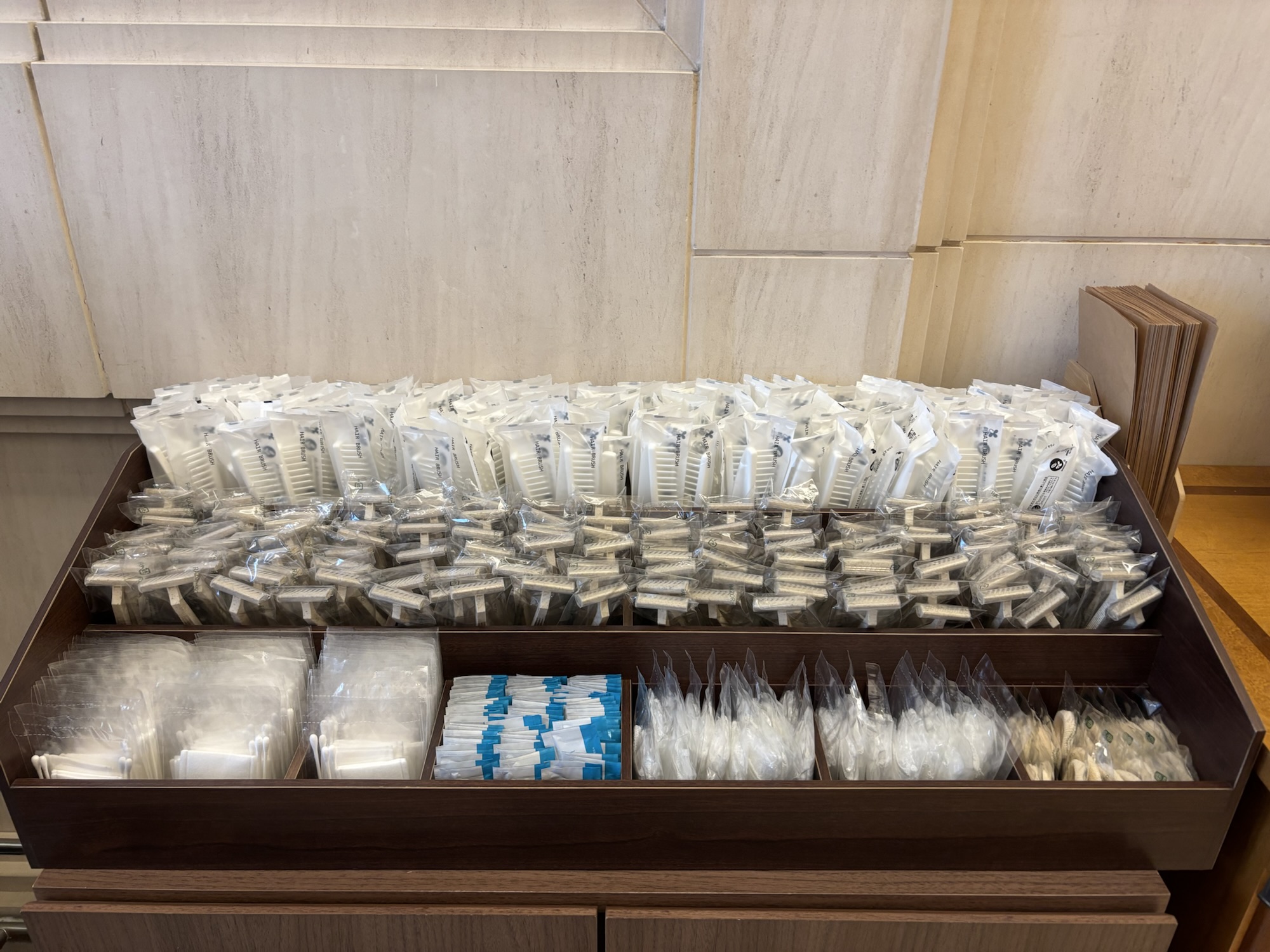 歯磨きセットは客室にあるのでこちらでもらうのはコットンセットくらいですね。