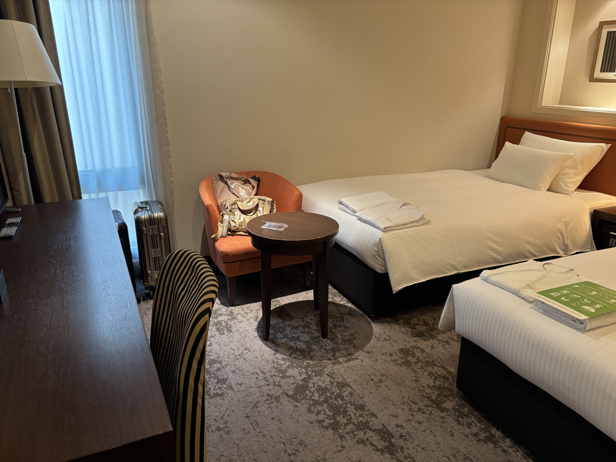 今回はスタンダードツインの部屋を予約しましたが、今は福岡も本当に宿泊費が高騰していて、平日でも普通に1室20,000円近くする。