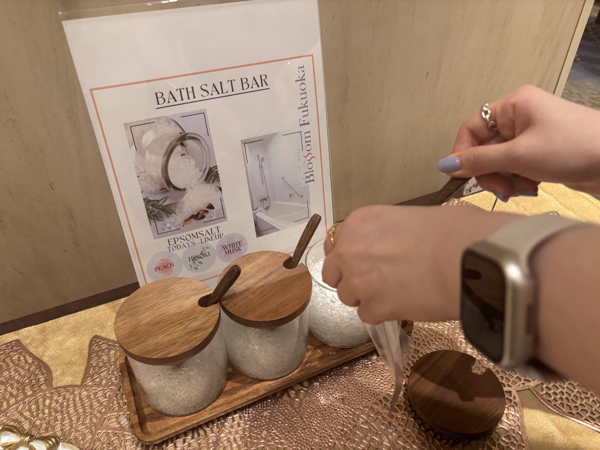 ユニットではあれどバスタブも広いし、バスソルトのアメニティも良かった。