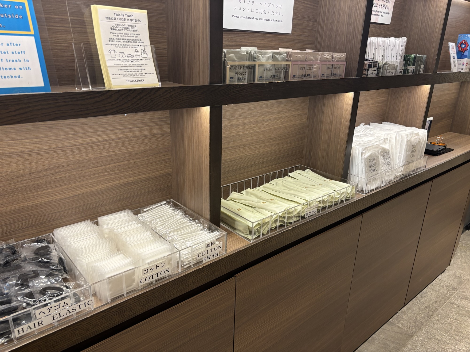 アメニティーはロビーフロアで必要なものを持っていくシステム、基礎化粧品も揃っているのが嬉しいですね。